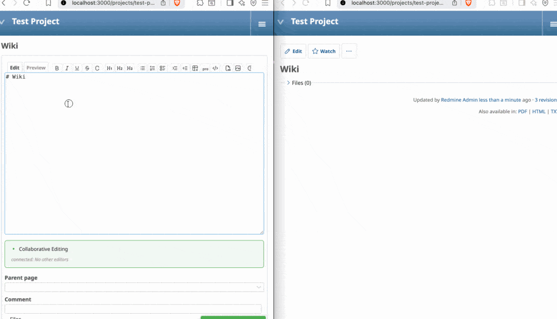 I think that would be great to have a real-time collaborative editor wiki that many people could work at same time together like google docs. There are few open source software that implements it with the operational transformation algorithm. It would help a lot who works inside big projects.