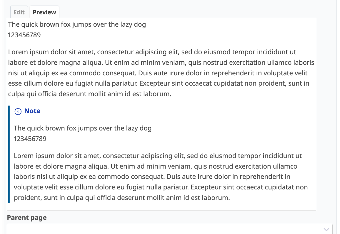 The paragraph padding is larger in preview mode than in the saved view.