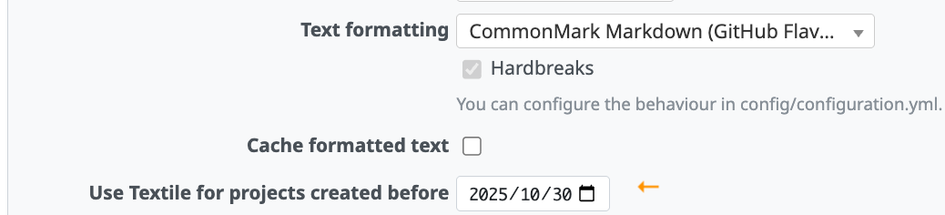 This way, Redmine instances that have been using Textile can start using CommonMark for newly created projects without affecting the old ones.