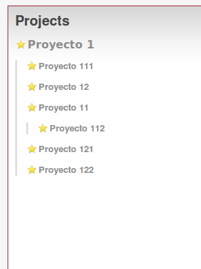 I'm using Redmine 1.0.1.stable.70 with MySQL, and I'm having some problems with the Projects view. The projects are not correctly nested (see attached image).