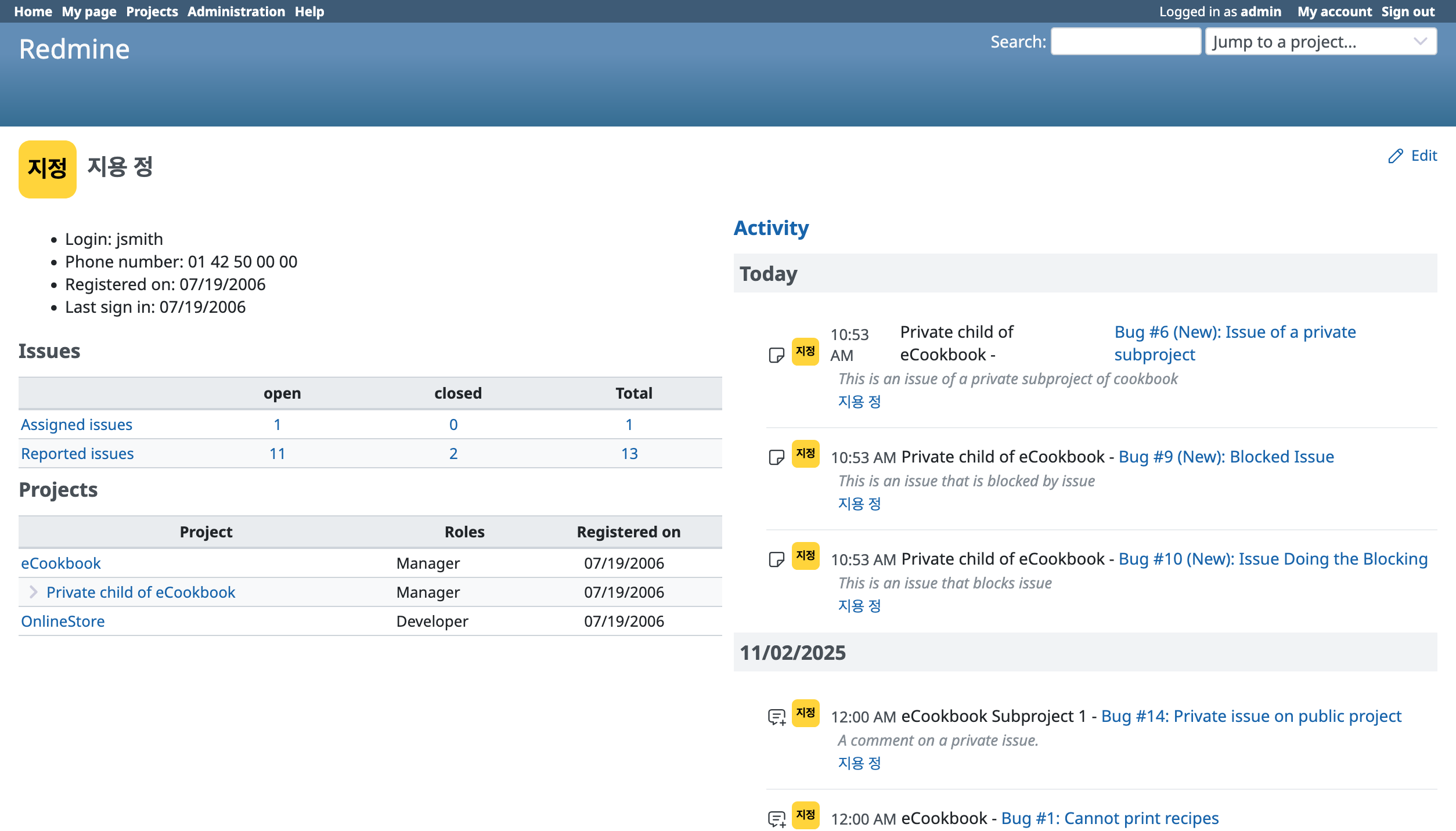 I’ve noticed what seems to be a display bug related to Korean user names in Redmine.