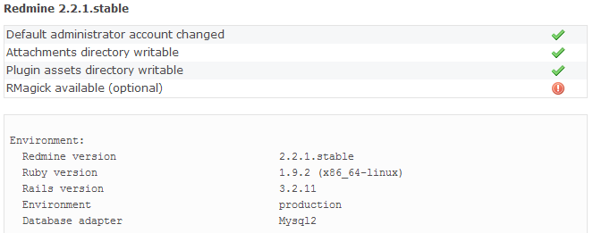 The gem rmagick (2.13.1) is installed. I checked it with gem list. Image thumbnails are created in redmine, so rmagick is working too.