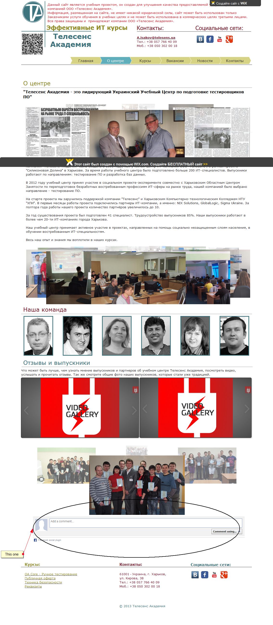 3. Scroll to "Отзывы и выпускники" and find the "add a comment via facebook plugin" under the pictures.