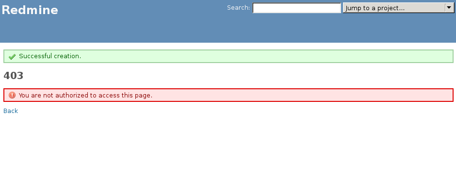 When that user created a new project that is not public, even he (the owner of newly created project) can not access his own freshly created project, please see the screenshot.