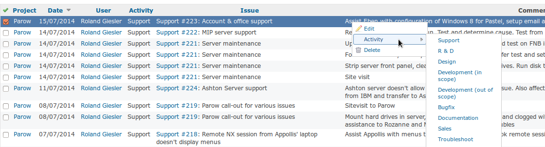 However, when I right click the detail of "spent time", the menu doesn't show all the fields and also not the custom field. Se the fourth attachment.