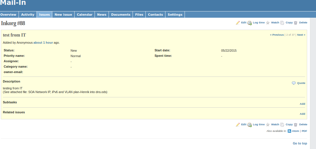 I am using redmine with receiving email to an inbox.