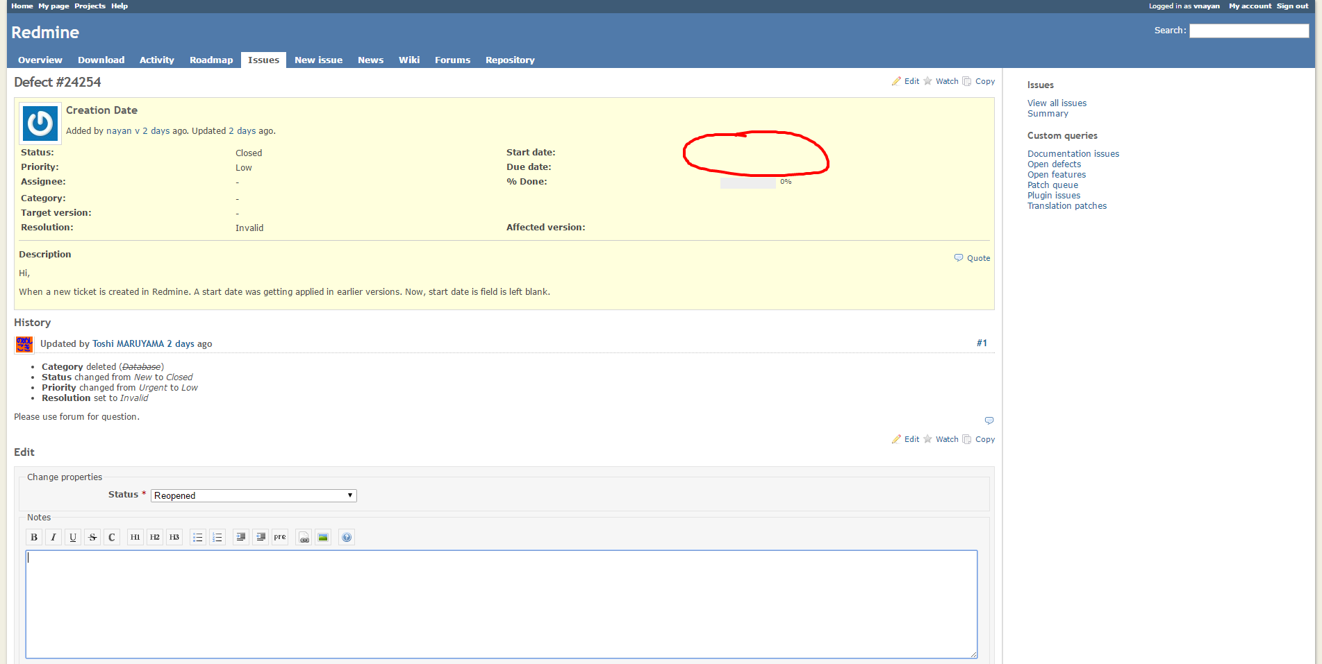 - File Defect 24254 Creation Date Redmine.png Defect 24254 Creation Date Redmine.png added