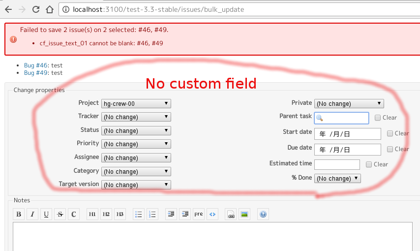 if i try to bulk move 2 task from project test1 to project test2 (by page named "Bulk edit selected issues")