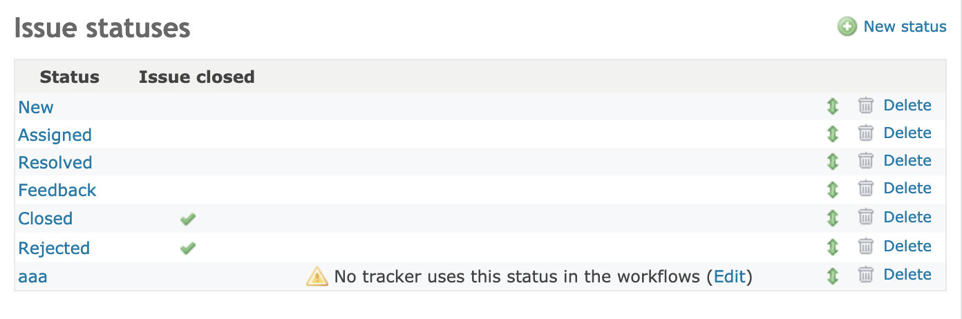 - Subject changed from Show warning when no workflow uses the status in the workflows to Show warning when no tracker uses the status in the workflows