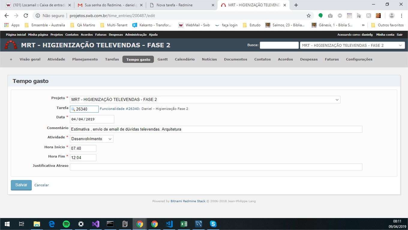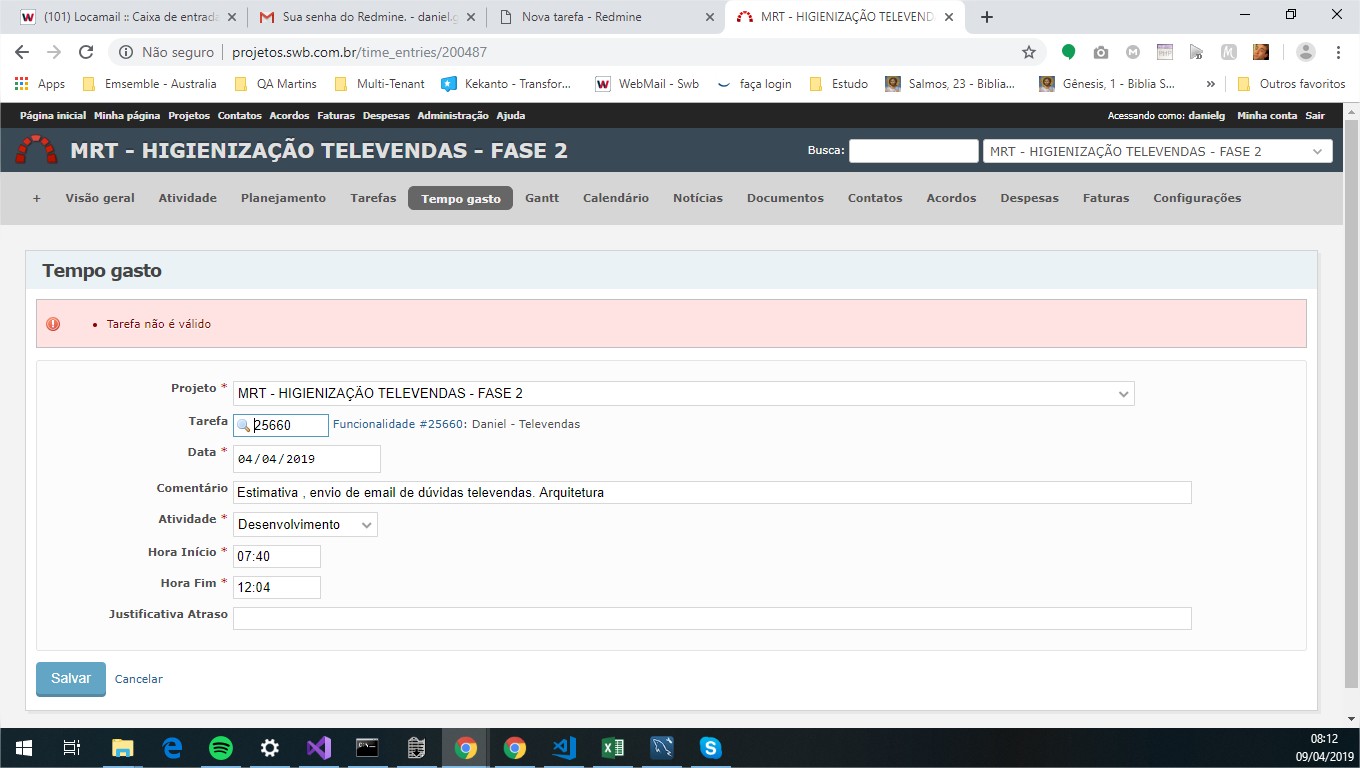 When I'm editing a Time Entrie, changing the Issue id, isn't possible to save, the application return the error in Portuguese: "Tarefa não é válida" , english: "Issue is invalid".