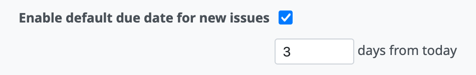 - Subject changed from Default due date for issues to Default due date for new issues with configurable offset from today