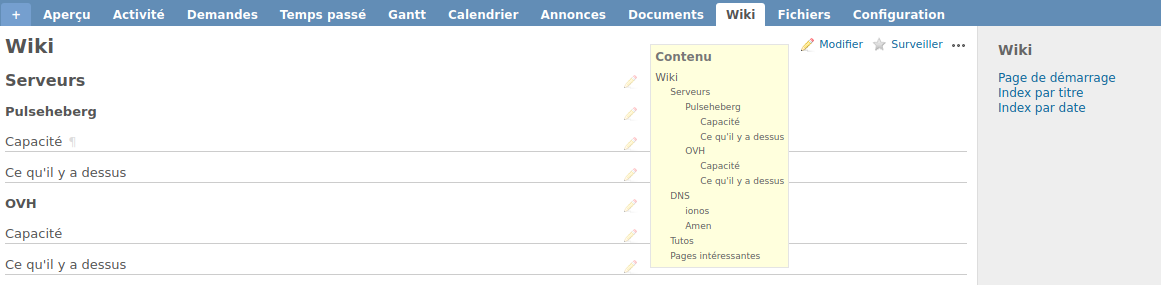 Actually as you can see the result is quite disturbing because I would have expected to get the TOC under "Modifier Surveiller".