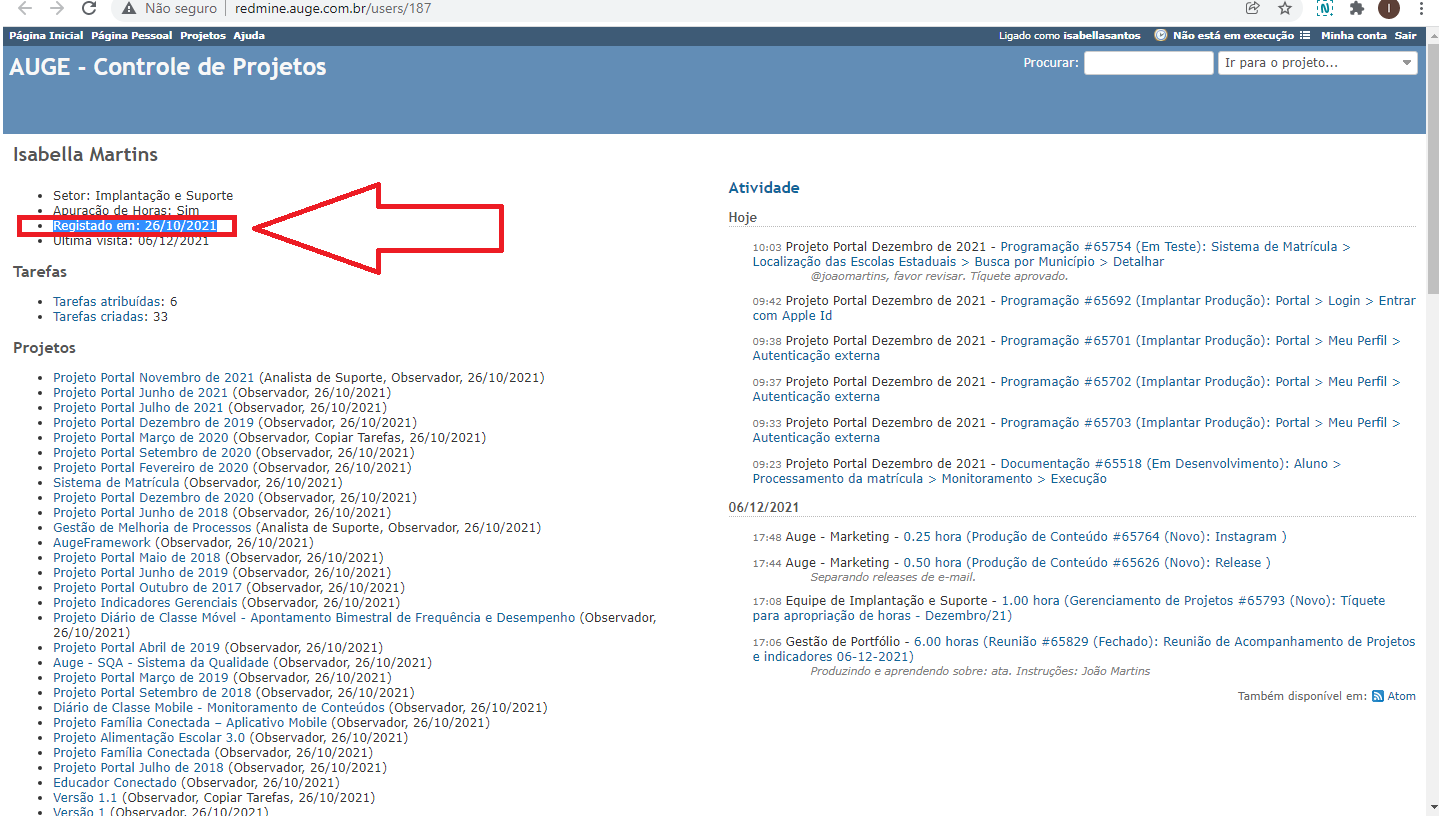 - Subject changed from AUGE Controle de projetos - ERRO NA ESCRITA to Misspelling of Portuguese translation of label_registered_on