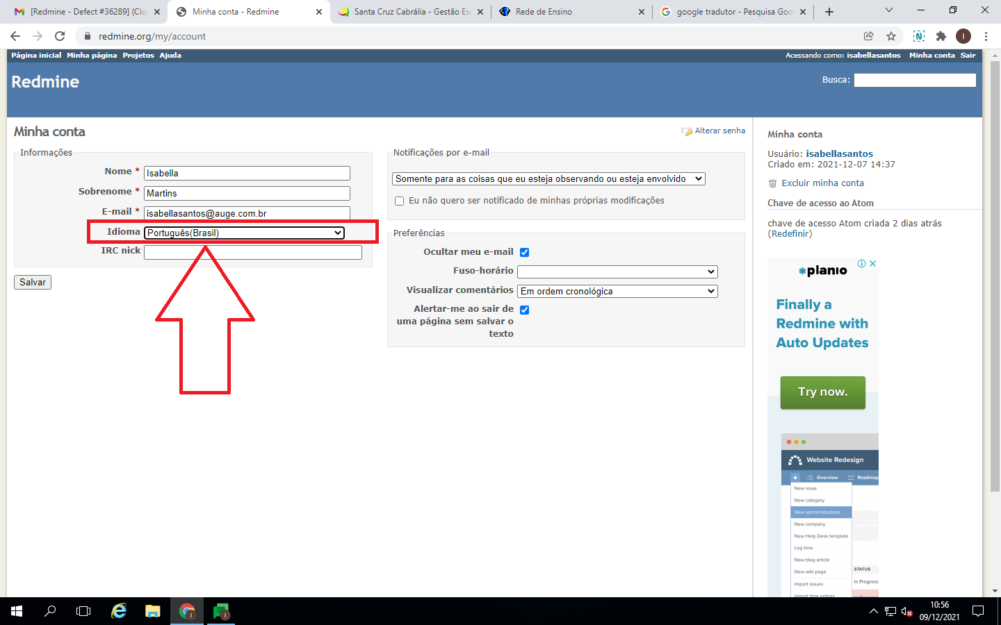 The host of the first screenshot is redmine.auge.com.br, but the second screenshot is redmine.org. You have to switch the language on redmine.auge.com.br.