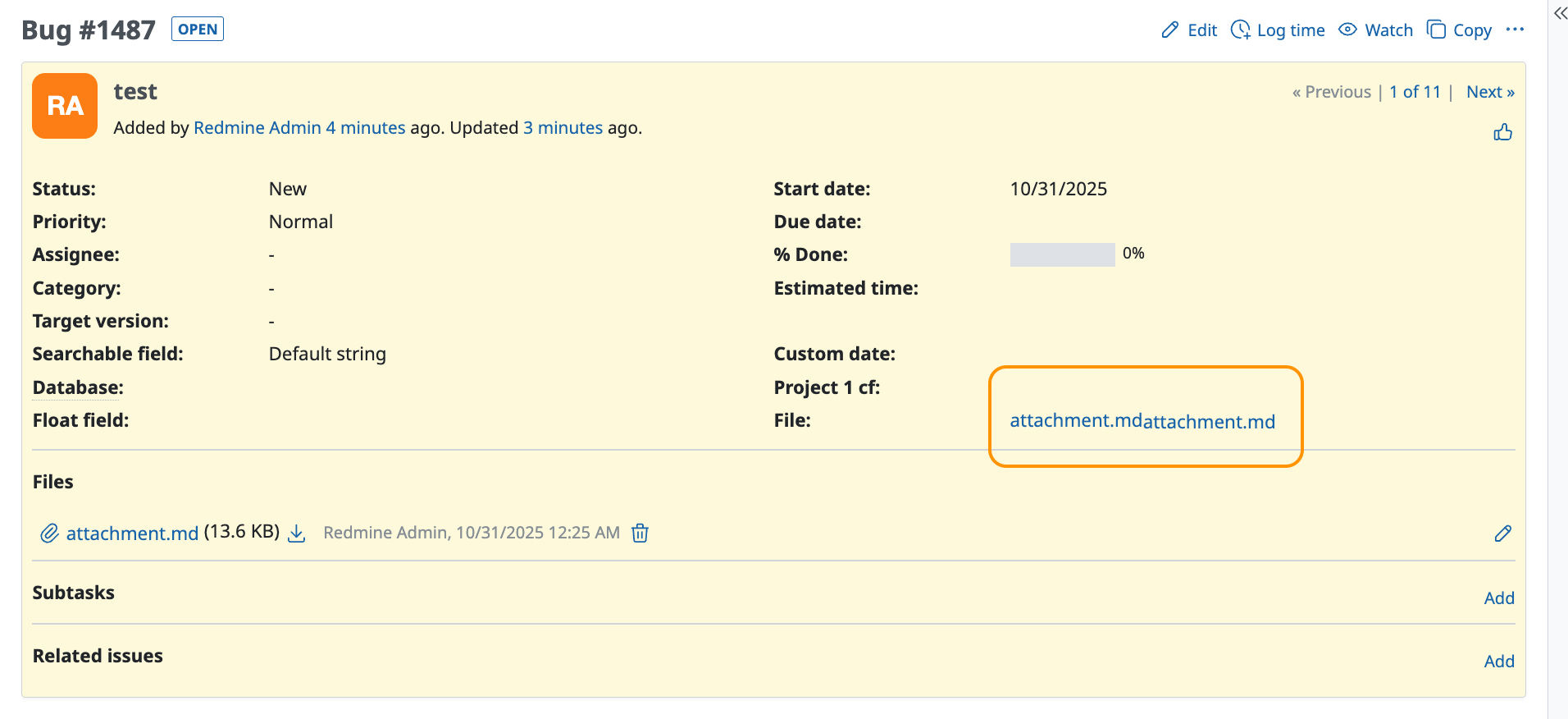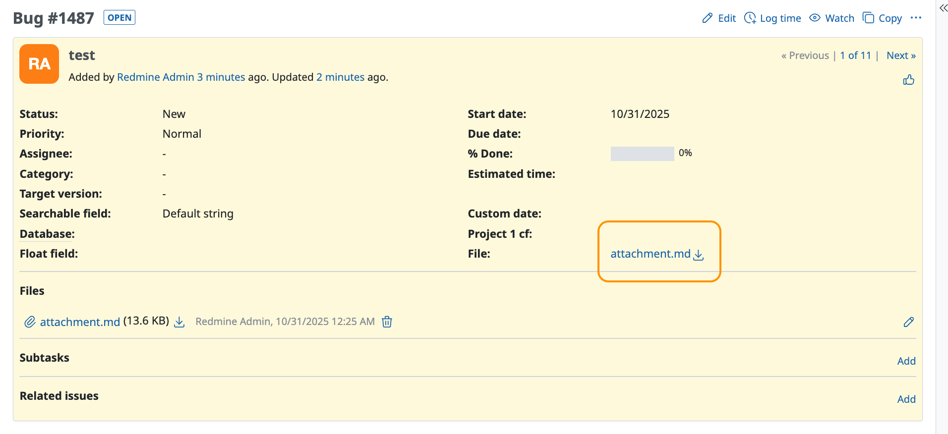 Previously, when a ticket included a file-type custom field, a download icon appeared next to the file name. However, the icon is now replaced by the file name itself.