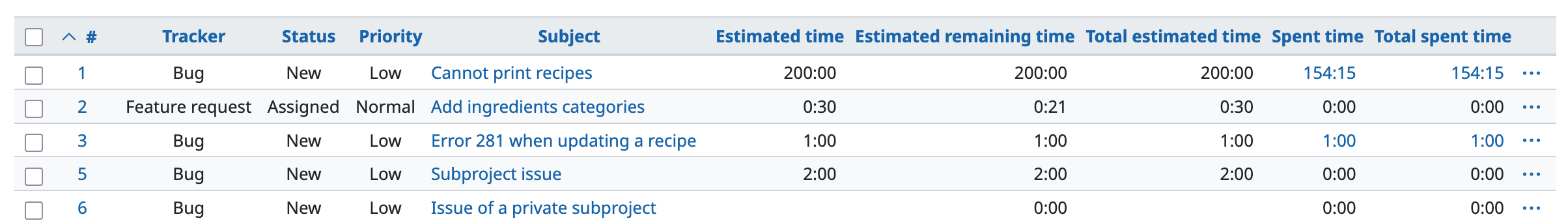 The attached patch changes the alignment of all time‑tracking columns in the issues list to right‑aligned (e.g., Estimated time, Spent time).