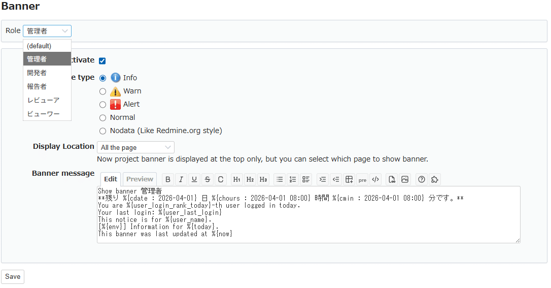 An enhanced fork of Redmine Banner that adds role-based banners and dynamic macro features while maintaining full compatibility with the original plugin.