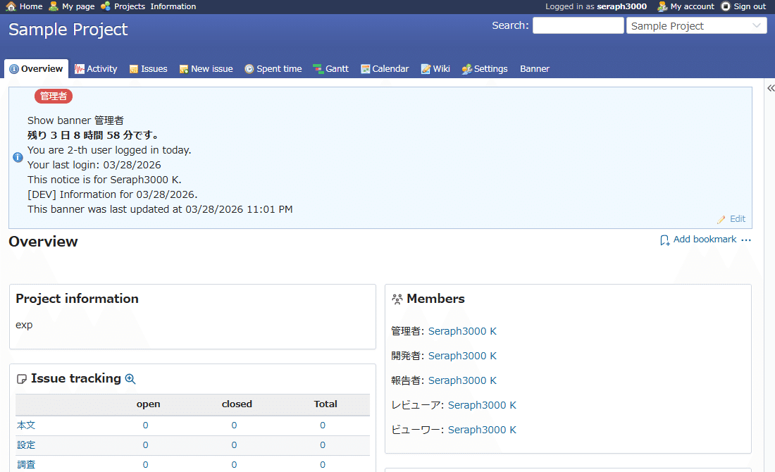 - GitHub: https://github.com/seraph3000/redmine_banner